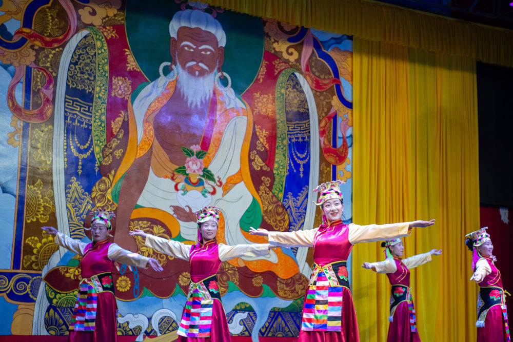 6月24日,群众在国家级非物质文化遗产雅砻扎西雪巴藏戏传习基地表演传统舞蹈节目。新华网 旦增努布 摄