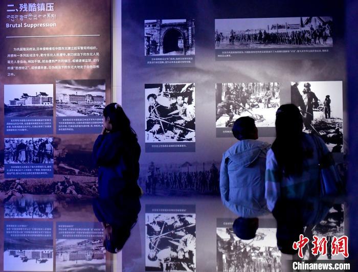 7月1日,《勿忘国耻 振兴中华——日本侵略中国东北史实展》在位于拉萨的西藏博物馆开展。该展览由西藏自治区文物局主办,西藏博物馆、伪满皇宫博物院共同承办。图为观众正在观看展览。中新社记者 李林 摄
