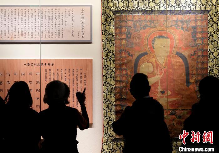 5月18日是第49个国际博物馆日,今年的主题是“快速变化社会中的博物馆未来”,西藏博物馆迎来参观热潮。图为观众正在欣赏展陈的八思巴肖像唐卡。中新社记者 李林 摄