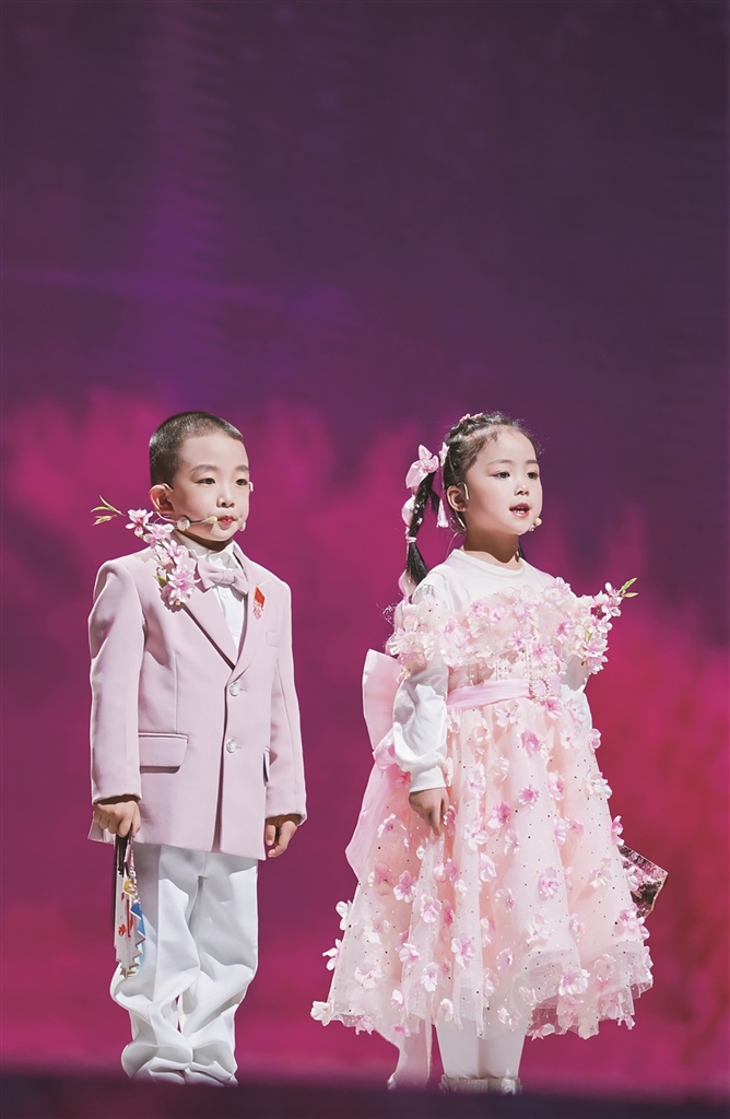 大赛幼儿组金奖获得者刘瑾辰、田星楠展演最美故事。