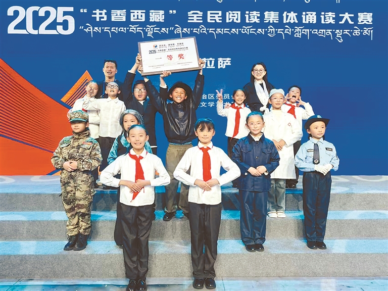 2025年“书香西藏”全民阅读集体诵读大赛上,阿里地区少年代表队荣获一等奖,展现阅读风采。阿里地委宣传部供图