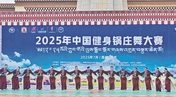 图为2025年中国健身锅庄舞大赛中,阿里地区象雄代表队表演的锅庄荣获传统锅庄舞自编套路中年组一等奖。阿里地委宣传部供图