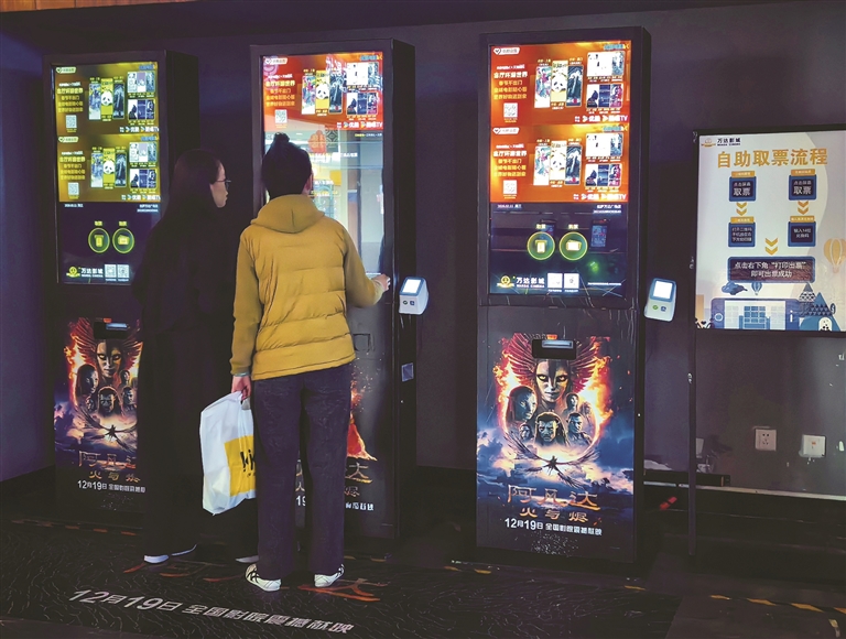 拉萨城关万达影城,市民正在取电影票。