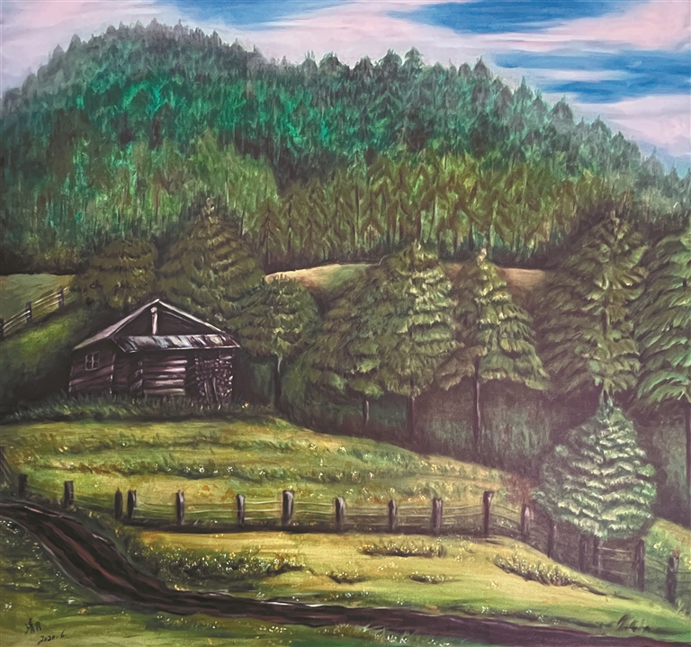 图为唐瑟达娃作品《鲁朗风光·其一》。记者 卢文静 摄