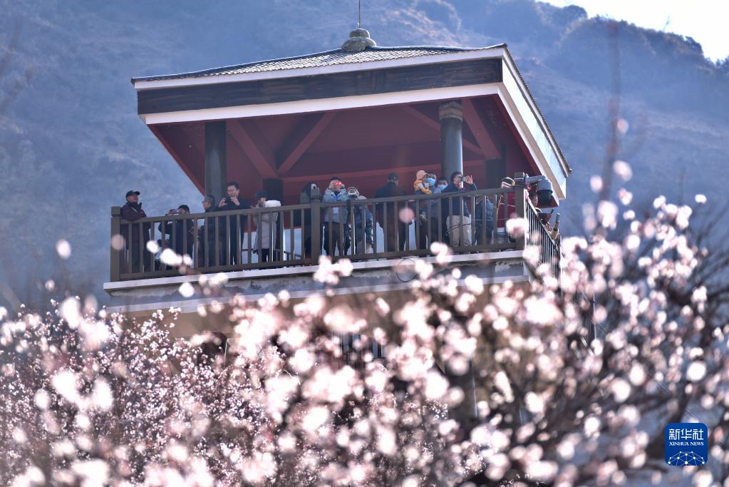 游客在林芝市嘎拉村观赏盛开的桃花(2021年3月27日摄)。新华社记者 孙瑞博 摄