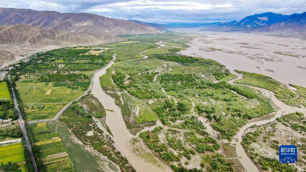 这是雅鲁藏布江山南段公路两旁的绿色长廊(2021年7月20日摄,无人机照片)。新华社记者 晋美多吉 摄
