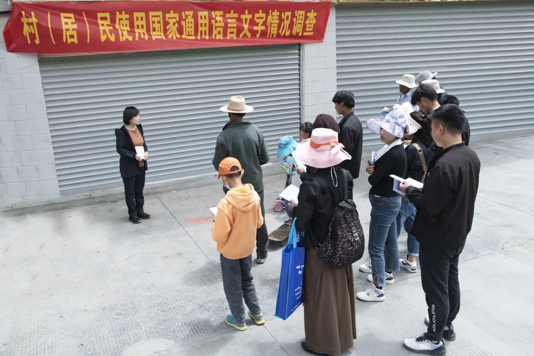 宋晓婧(左一)在开展村(居)民使用国家通用语言文字情况调查