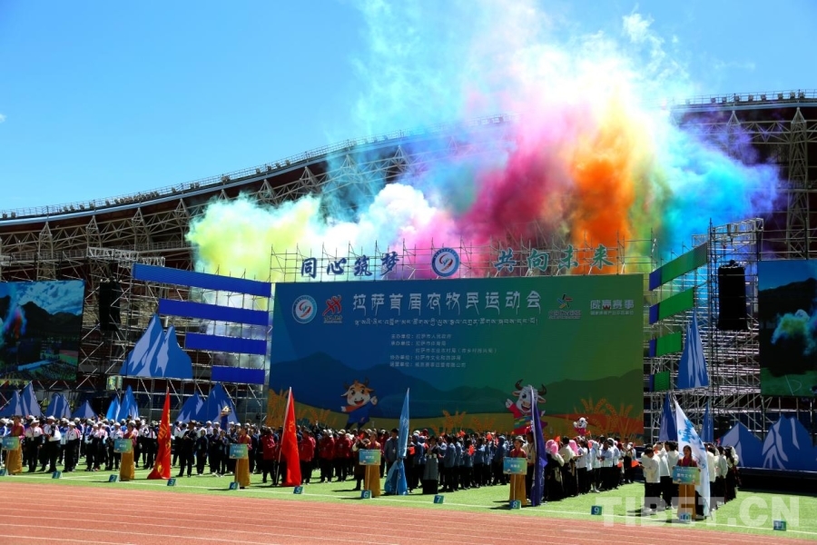 6月22日上午,阳光明媚,拉萨首届农牧民运动会在拉萨市群众文化体育中心开幕。此次运动会不仅是拉萨历史上规格最高、规模最大的体育盛会,更是各族群众交往交流交融的一场团结、和谐、圆满的盛会。
