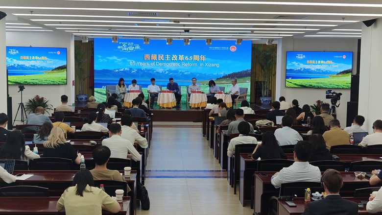 6月27日,中国记协举办“西藏民主改革65周年”主题新闻茶座,邀请中国藏学研究中心当代所所长张诗高、宗教所副所长拉先加、历史研究所副所长严永山、历史研究所研究员梁俊艳、社会经济所助理研究员席蒙蒙和宗教所助理研究员索朗卓玛,与中外记者、驻华使馆官员进行交流,并回答记者提问。