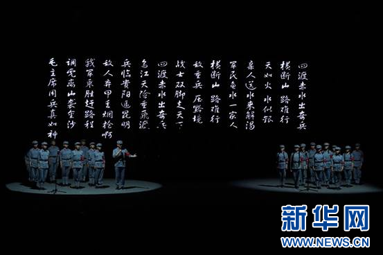 8月11日,在那曲市“乡村振兴 那曲奋进”活动教育系统成果汇报文艺晚会上,《四渡赤水》节目表演现场。新华网发 朱俊摄