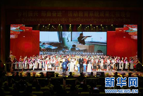 8月11日,那曲市“乡村振兴 那曲奋进”活动教育系统成果汇报文艺晚会上现场。新华网发 朱俊摄