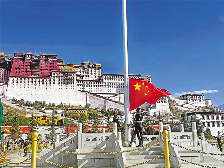 满心中国红、拳拳爱国情。10月1日上午,西藏举行庄严的“升国旗、唱国歌”仪式,热烈庆祝中华人民共和国成立75周年。自治区党政军领导与各族各界干部群众代表,共同唱响礼赞新中国、奋进新时代的主旋律,共同祝福伟大祖国繁荣昌盛,祝福西藏的明天更加美好。