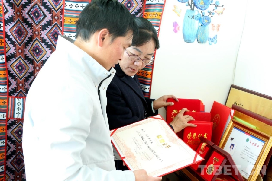 “我所从事的工作本身就是民族团结的具体实践。”央宗现在从事藏汉双语编译工作。近些年,夫妇俩已经成为远近闻名的“模范夫妻”,也得到了很多表彰。看着家里整齐摆放的各式证书、奖状,央宗说:“从我们这个‘小家’的幸福美满就可以看出,只要各民族团结一家亲,那祖国这个大家庭一定能够更加繁荣昌盛。这些年,各级各部门组织的相关活动,我们都会积极参与,也会给困难群众捐款捐物,我们既要做民族团结的实践者、受益者,更要做民族团结的宣传者。”(通讯员/扎西多吉 记者/王佳豪 张宇)