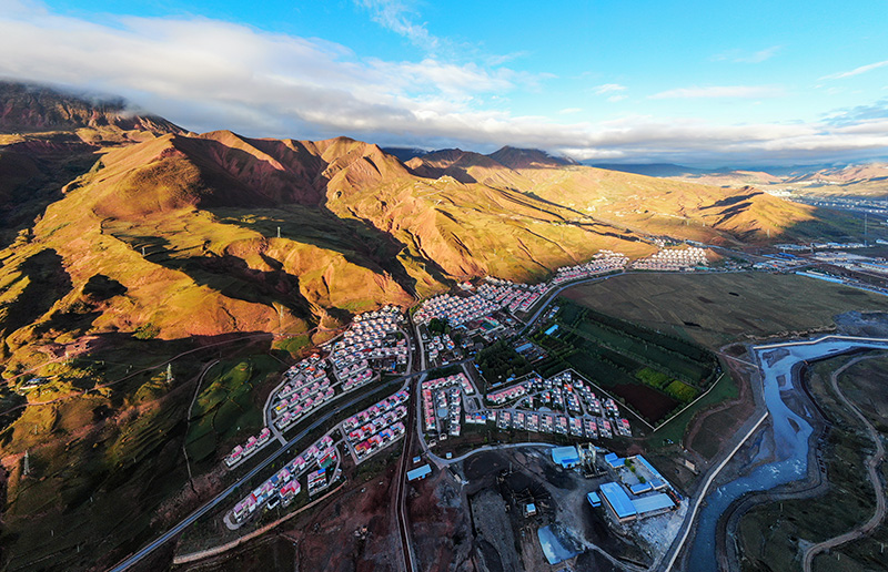 昌都市丁青县协雄乡郎通村,清晨太阳慢慢升起,照耀在村落上,展现了美丽和谐的乡村图景。