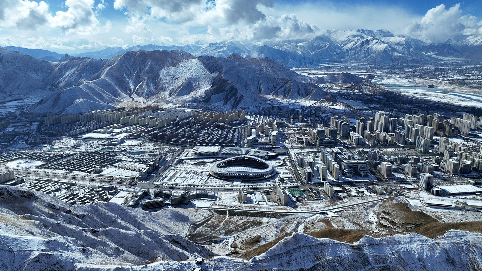 四周是高耸巍峨的大山,中间是科技化的现代城市,平地起高楼,拉萨高新区的飞速发展,推动西部大开发形成新格局,有力支撑现代化经济体系建设。
