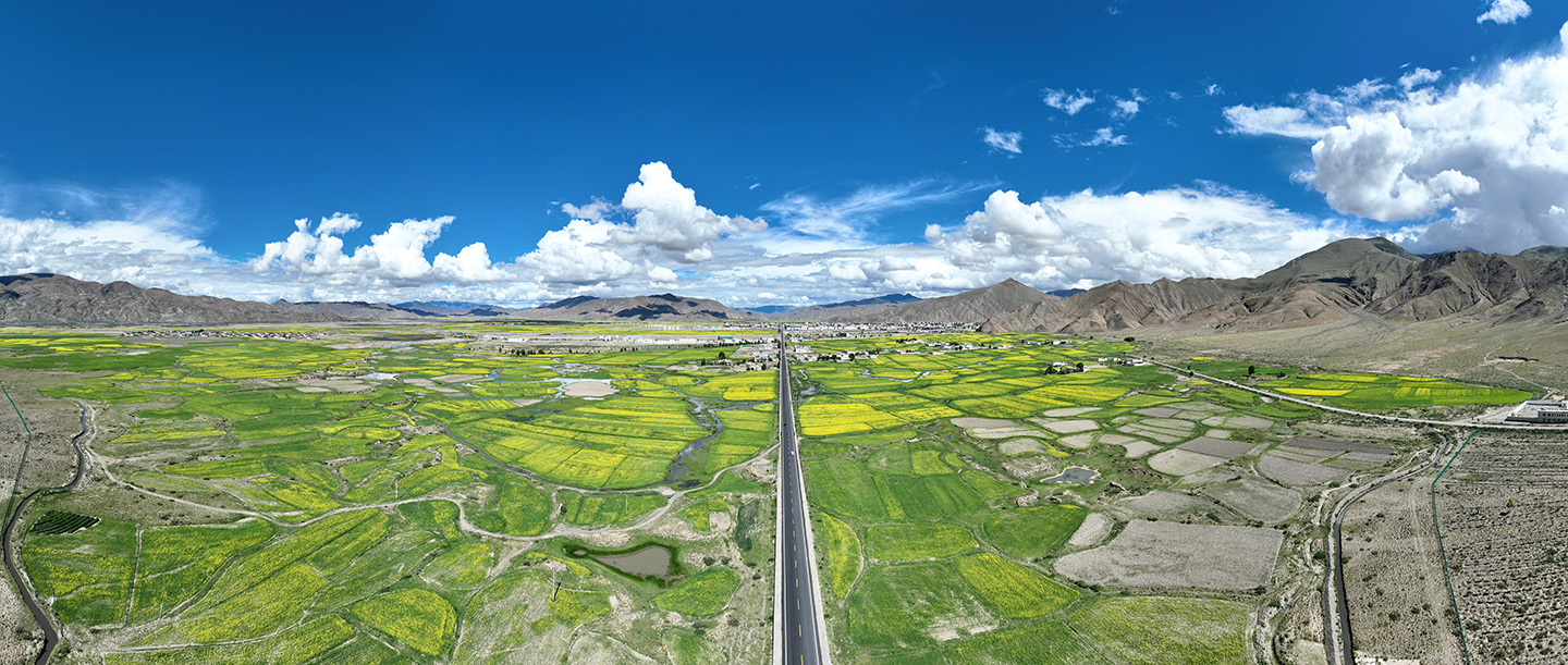 一条公路将眼前的这片耕地一分为二。公路的建设为拉孜的经济发展提供了有力保障。发展中的西藏拉孜县,正以其独特的魅力和坚实的步伐,迈向更加繁荣和美好的未来。