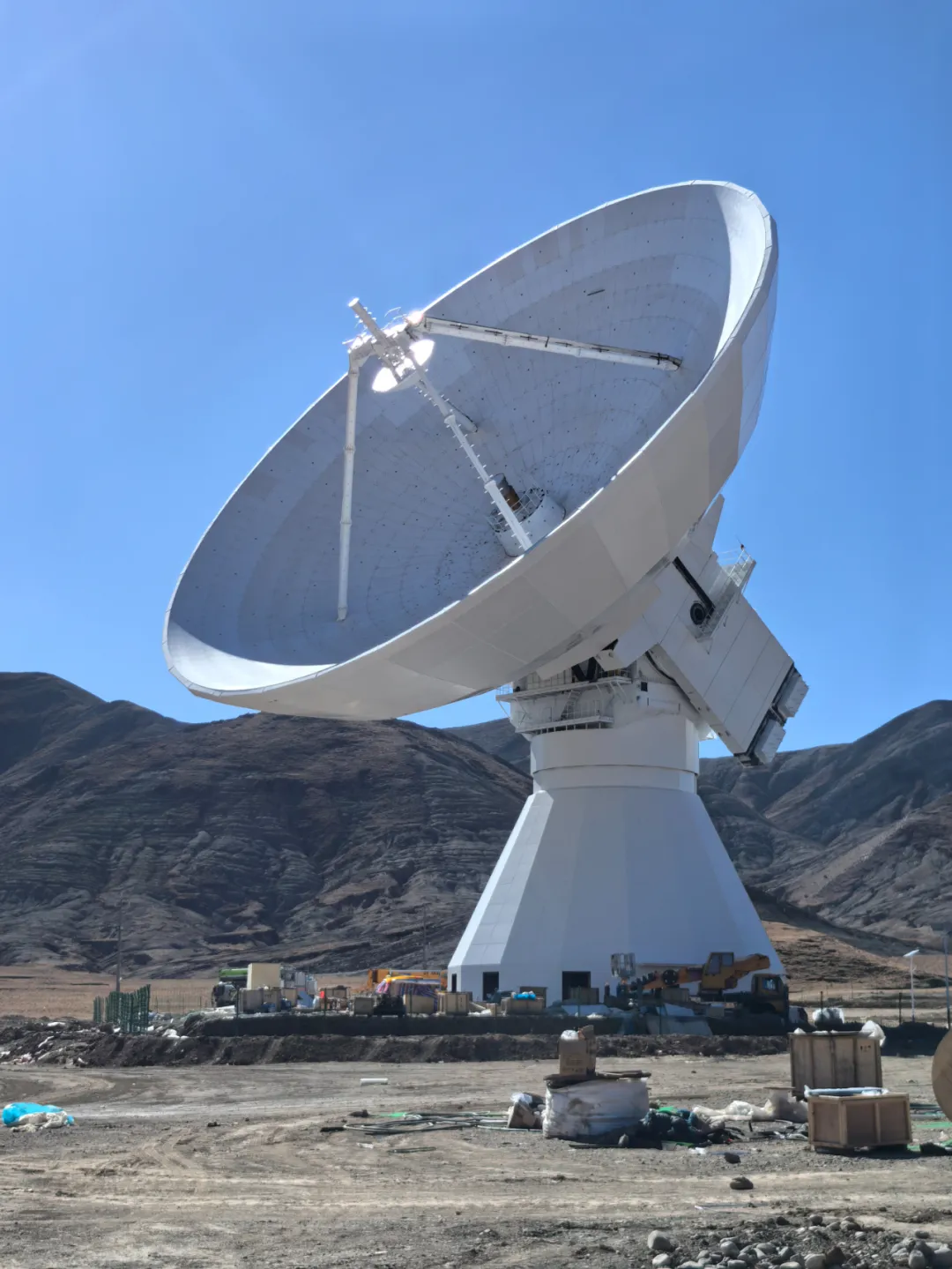 望远镜采用了全实面转台式天线的结构保型、全环控保温、全数字化控制技术等关键技术,大幅度提升面型精度和天线效率,面型精度好于0.3毫米,最终在极端工况下实现大口径700MHz至50GHz的频率观测,观测波段最高还可拓展至100GHz。
