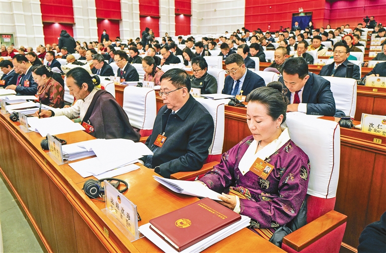 图为1月18日上午,会议现场,委员们认真聆听工作报告。记者 丹增群培 摄