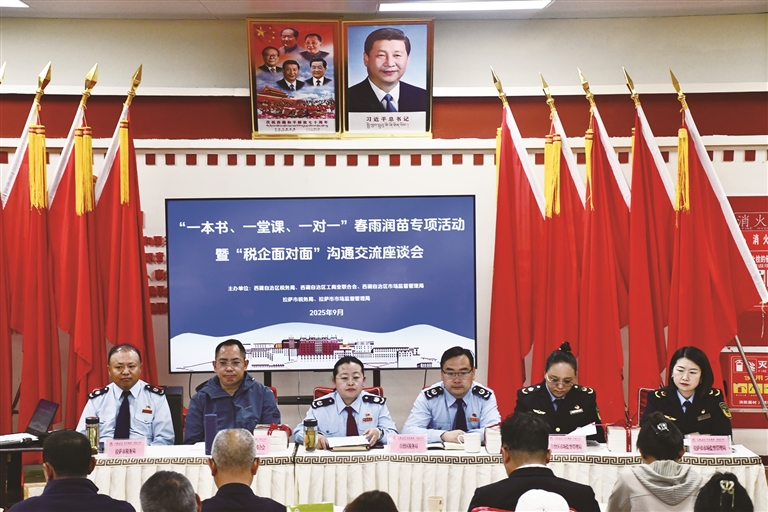 9月29日,国家税务总局西藏自治区税务局联合西藏自治区工商业联合会、西藏自治区市场监督管理局、国家税务总局拉萨市税务局、拉萨市市场监督管理局共同举办“一本书、一堂课、一对一”春雨润苗主题活动。