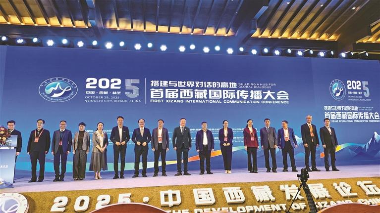 10月29日,以“搭建与世界对话的高地”为主题的首届西藏国际传播大会在林芝市举办。大会还举办了“高端对话:‘感知西藏 读懂中国’”“涉藏国际传播专家分享会”“国际传播圆桌会谈”等多个活动。右图:在首届西藏国际传播大会上,西藏自治区党委宣传部与媒体机构、学界等签署《涉藏国际传播联动协作框架协议》。记者 王敏 摄