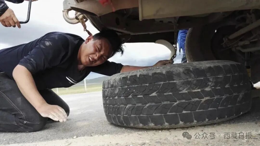 西藏日报社记者在那曲蹲点采访时遇爆胎。