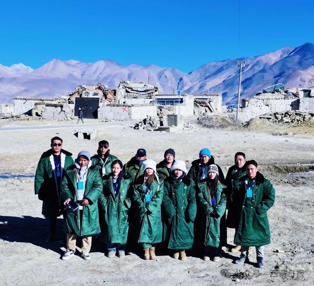 1月7日,西藏日喀则市定日县发生6.8级地震。图为西藏日报记者在结束震区采访报道后合影。