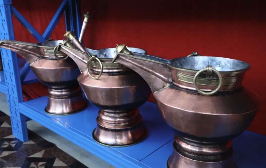 传承上百年的岗则铜器是自治区级非物质文化遗产代表性项目,款式丰富、做工精致,以其独特的锻造工艺闻名,被誉为“捶打”的艺术。每一件岗则铜器都采用藏语称之为“库姆动”的锻造法,历经14天以上、千万次捶打方能锻造成型。从实用的餐具到华丽的装饰品,每一件岗则铜器都凝聚了匠人的智慧与心血。