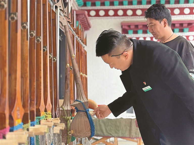 农行西藏分行客户经理上门调研扎木念琴的制作销售情况。