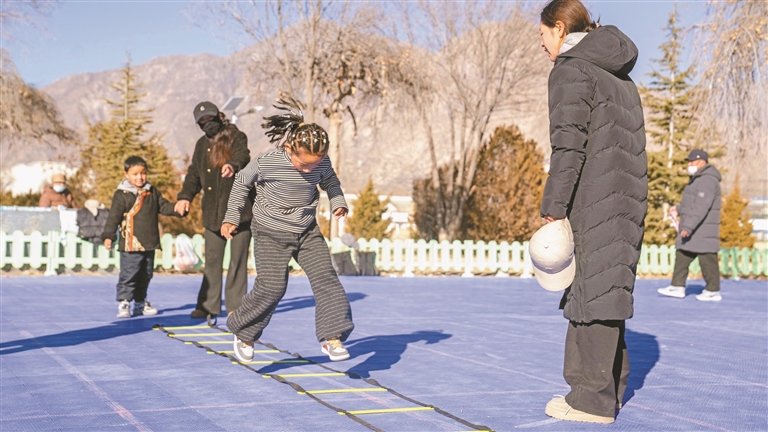 图为1月23日,残障儿童在拉萨市全民健身体彩公园内参加“阳光残障儿童公益兴趣班”体适能训练课程。记者 欧珠次仁 摄