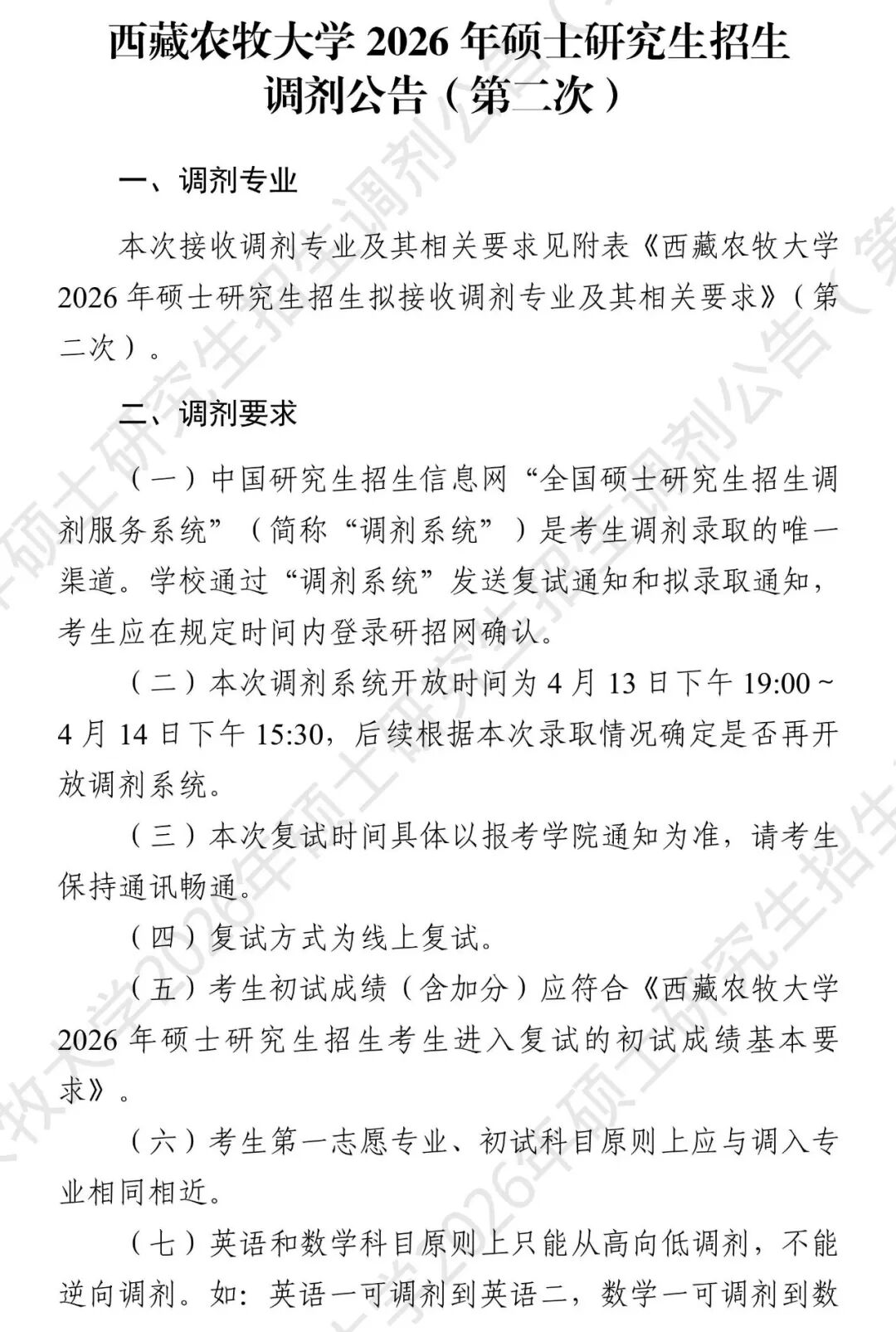 2026年硕士研究生招生调剂公告(第二次)