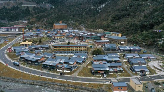 现代化的藏式楼房、干净整洁的街道