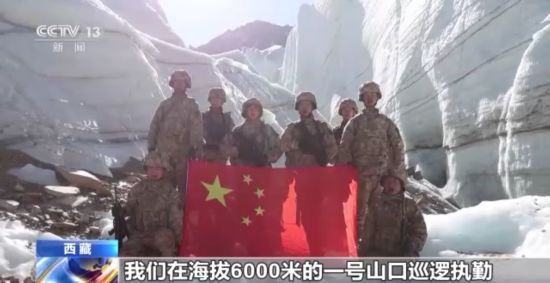 “高原戍边模范营”巡逻分队全体官兵:我们在海拔6000米的一号山口巡逻执勤,经观察无异常,特向全国人民报告,边防有我在,祖国请放心!