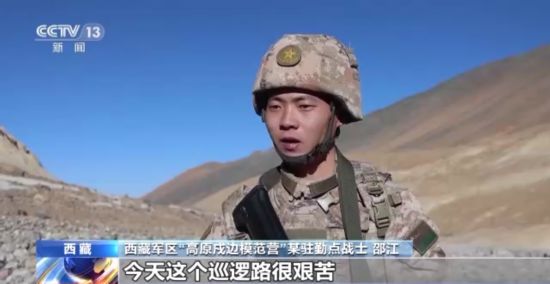 西藏军区“高原戍边模范营”某驻勤点战士 邵江:今天这个巡逻很艰苦,很多地方是我没有想象到的,比如陡峭的岩壁、冰川,到处存在未知的危险,但是能巡逻在祖国的边防线上,此刻我的内心是无比骄傲和自豪的,我会跟着老班长的步伐守好祖国的每一寸土地。