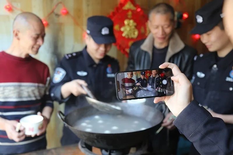 “快来吃汤圆啦!”粒粒汤圆保平安,也是团聚的象征。民警张高勇大声吆喝着,大家纷纷放下手中的工作,脱下手套,端起纸碗,看着热气腾腾的汤圆都露出幸福的笑容。拿着汤勺,民警宁诵岗挨个为大家盛汤圆,“每人先盛六个,寓意六六大顺”现场一下热闹了起来,这间原本简陋的宿舍瞬间就充满了节日的氛围和家的温暖。