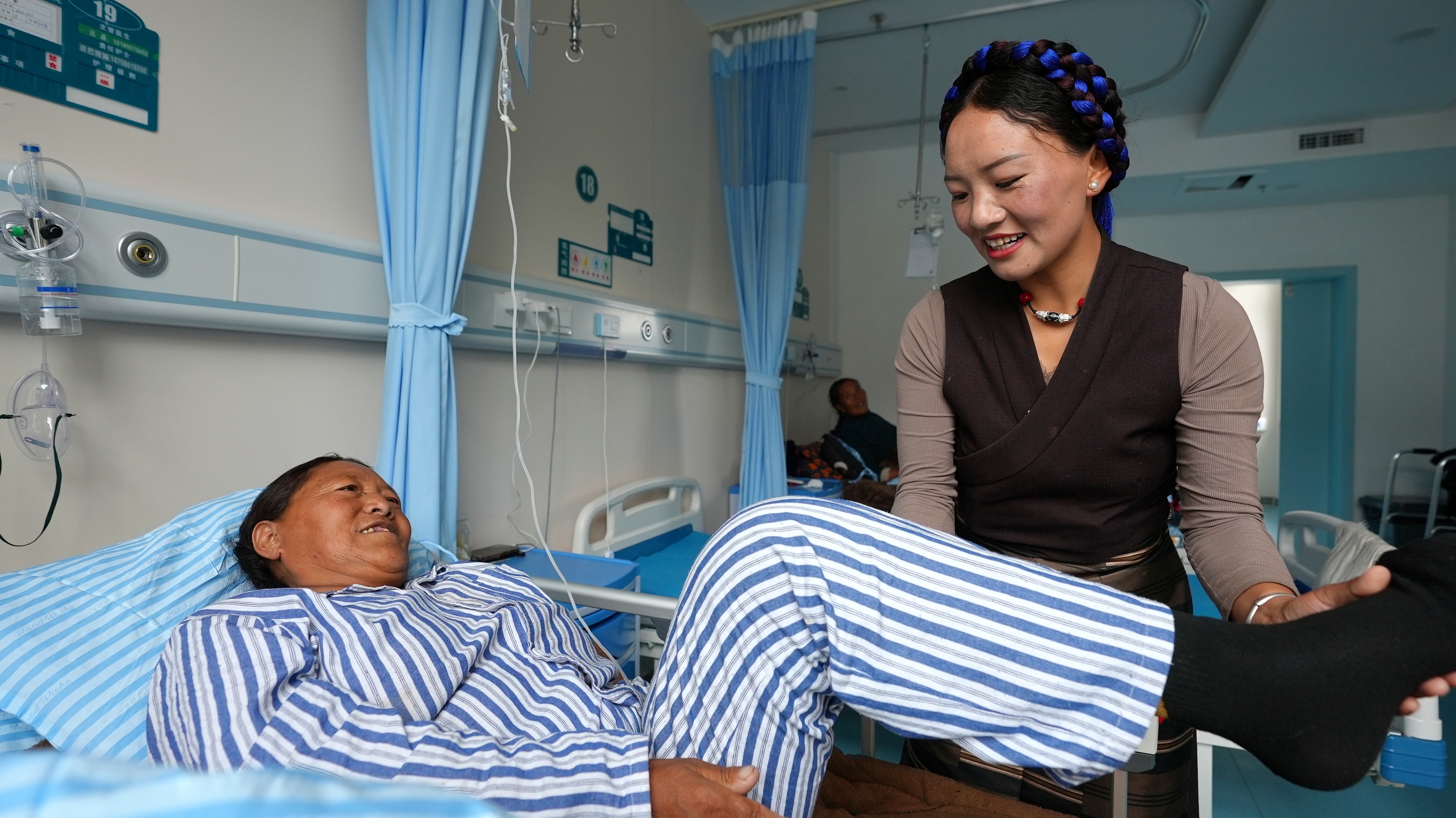 图为南京市第一医院关节外科专家团队了解患者术后康复情况。记者 格桑伦珠 摄