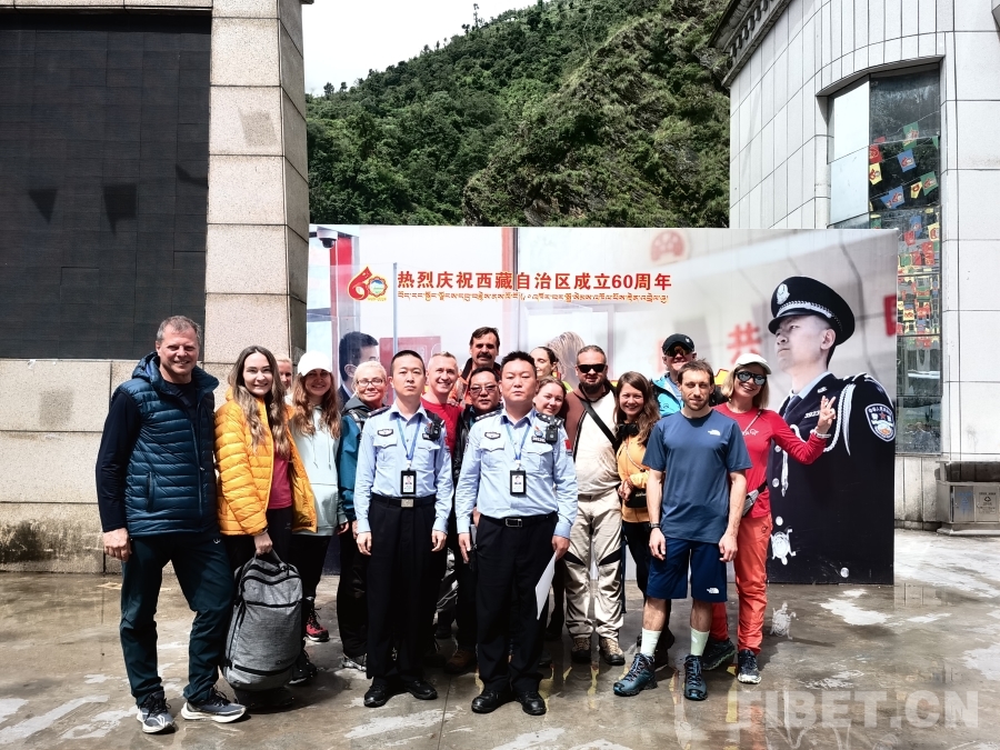 图为聂拉木边检站民警与樟木口岸首批免签入境的俄罗斯旅客合影
