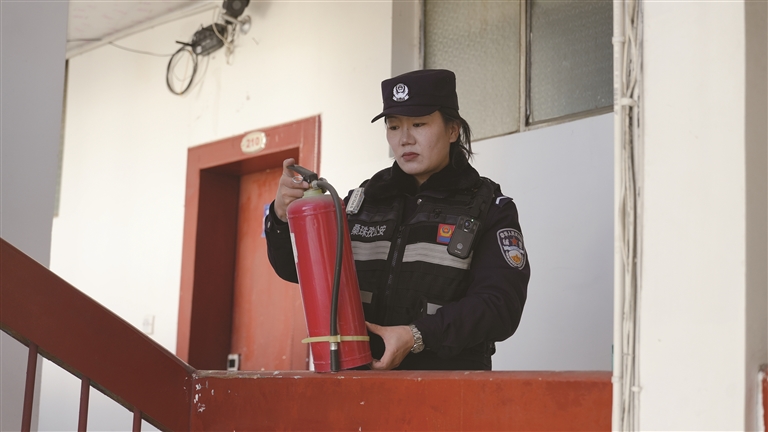 护校安园是宗巴常年坚守的重要岗位,每天上学、放学高峰时段,她总会提前抵达辖区学校周边,身着执勤装备站在路口,用规范的手势和耐心的劝导,为孩子们筑牢上下学的“安全防线”。安全隐患排查也是宗巴日常工作的重中之重。无论是餐饮店的灭火器材、用火用电规范,还是“九小场所”的疏散通道、涉险隐患排查,抑或是宾馆超市的监控运行、住宿登记制度,她始终紧盯细节、一丝不苟,不放过任何一处安全漏洞。她常说:“隐患排查多一分细心,群众安全就多一分保障。”