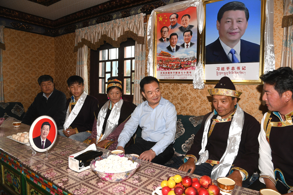 图为王君正在林芝市米林县扎西绕登乡彩门村群众达果家了解生产生活情况。记者 李洲 摄