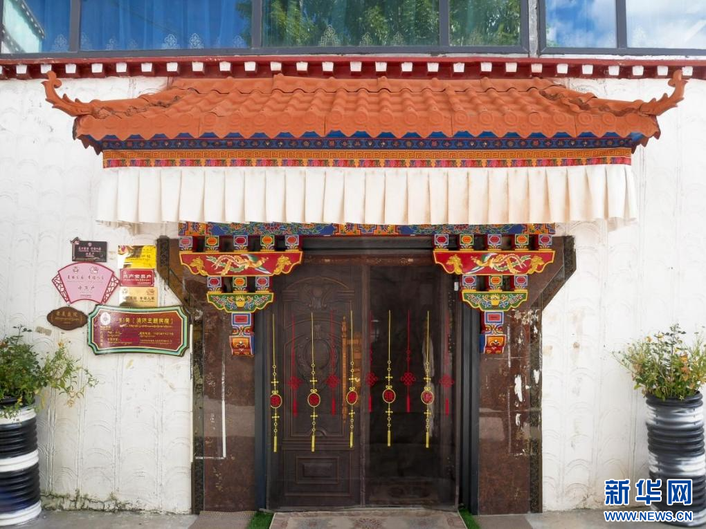 图为扎西曲登社区内民宿的大门(9月3日摄)。新华网发 文翔宇摄