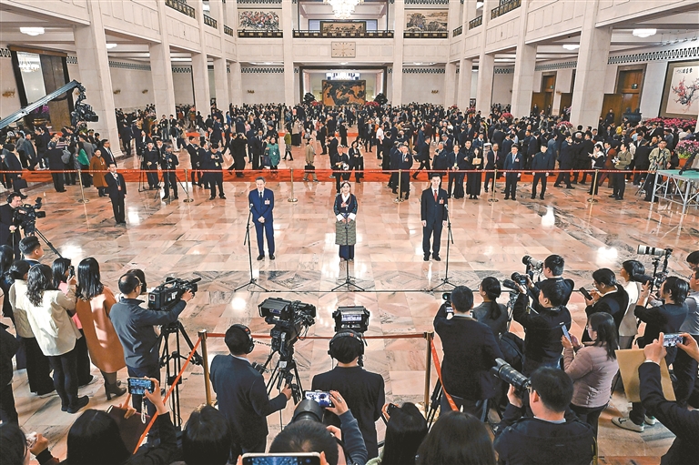 3月6日下午,人民大会堂西藏厅,西藏代表团举行开放团组会议。面对中外媒体的镜头,代表们谈体会、答问题,以自己的亲身经历,向世界展现一个欣欣向荣、生机勃勃的今日西藏。