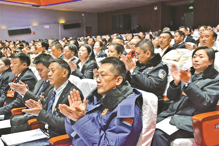 那曲市第二届人民代表大会第七次会议开幕会上,与会人员在聆听政府工作报告过程中,不时热烈鼓掌。记者 汪纯 摄