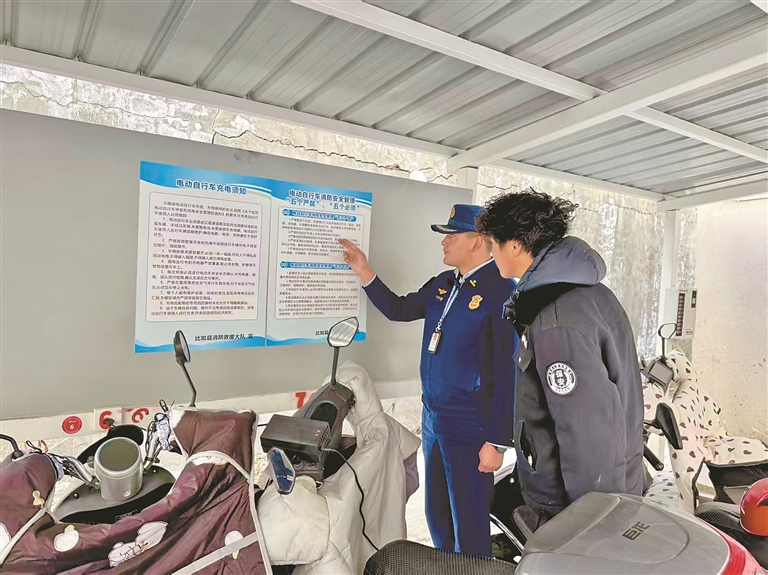 日前,为防范化解电动自行车火灾风险,那曲市比如县消防救援大队聚焦停放建设、设施升级、隐患整治、宣传引导四个环节,坚持疏堵结合、标本兼治、部门联动,推进电动自行车消防安全综合治理走深走实。