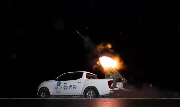 拉萨市人工影响天气领导小组办公室工作人员正在实施作业。 图由拉萨市气象局提供