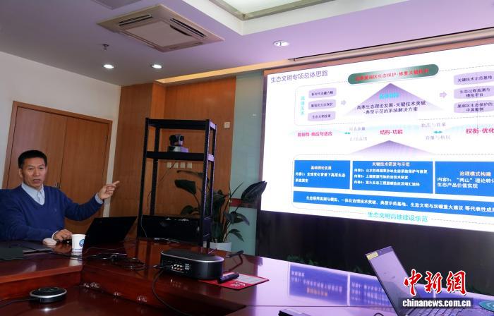 梁尔源研究员介绍青藏高原植树造林相关研究整体进展情况。中新网记者 孙自法 摄