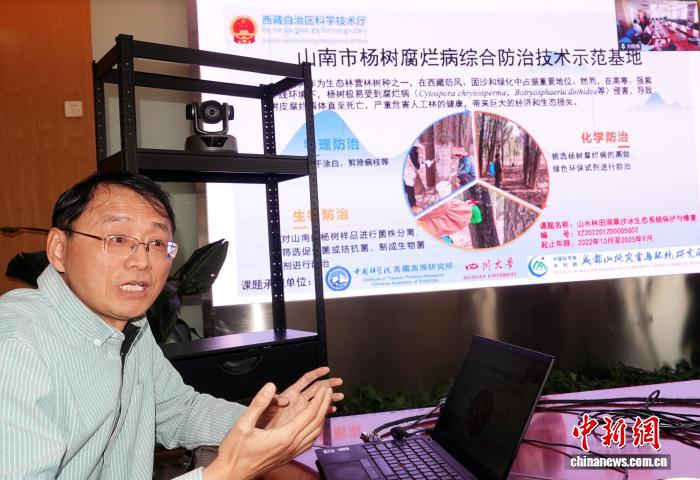 张更新研究员介绍青藏高原杨树病害防治研究进展。中新网记者 孙自法 摄