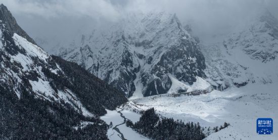 大雪覆盖的白普隆沟(3月21日摄,无人机照片)。新华社记者 洛卓嘉措 摄