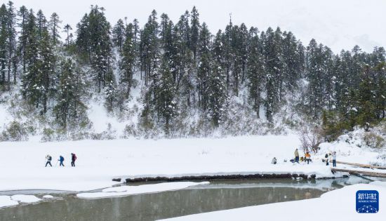 3月21日,游人和当地向导徒步进入白普隆沟牧场。新华社记者 洛卓嘉措 摄