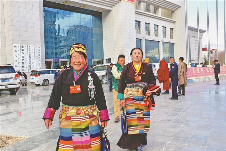 山南市政协委员参会结束后走出会场。