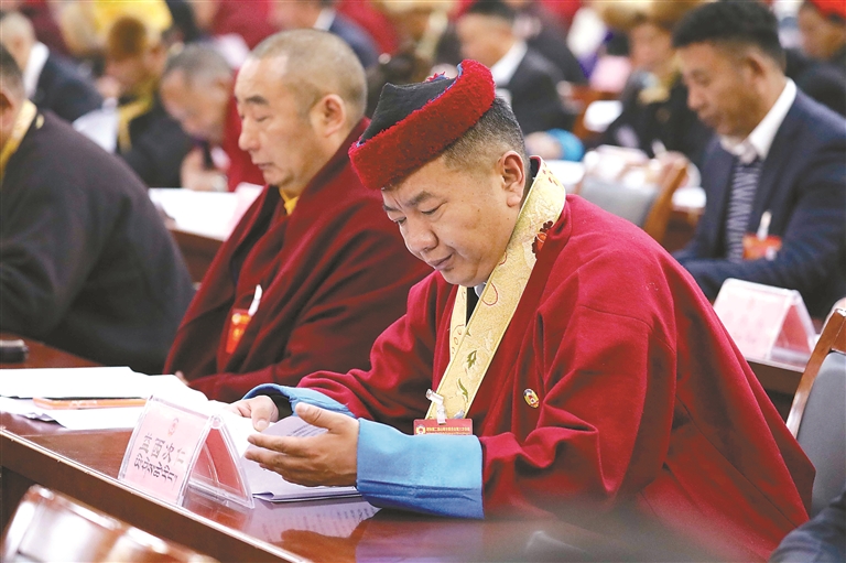 图为山南市政协委员在聆听政协工作报告。