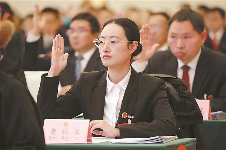 图为山南市人大代表举手表决政府工作报告。